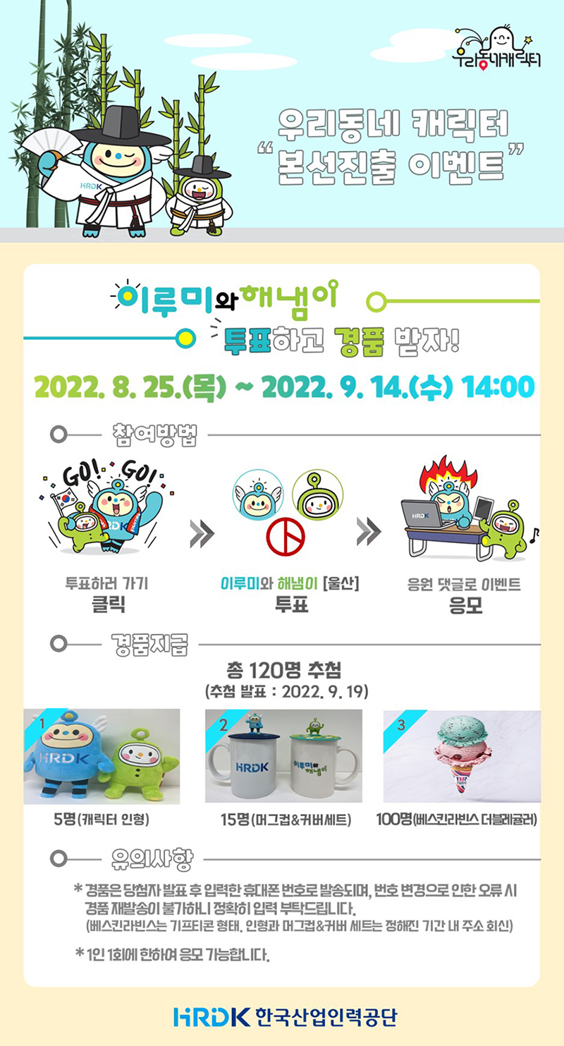 제5회 우리동네 캐릭터 대상 본선진출! 투표참여 이벤트!!!