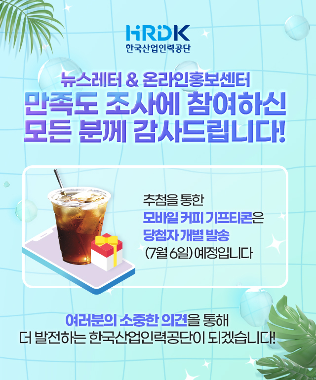 뉴스레터 & 온라인홍보센터 만족도 조사에 참여하신 모든분께 감사드립니다!