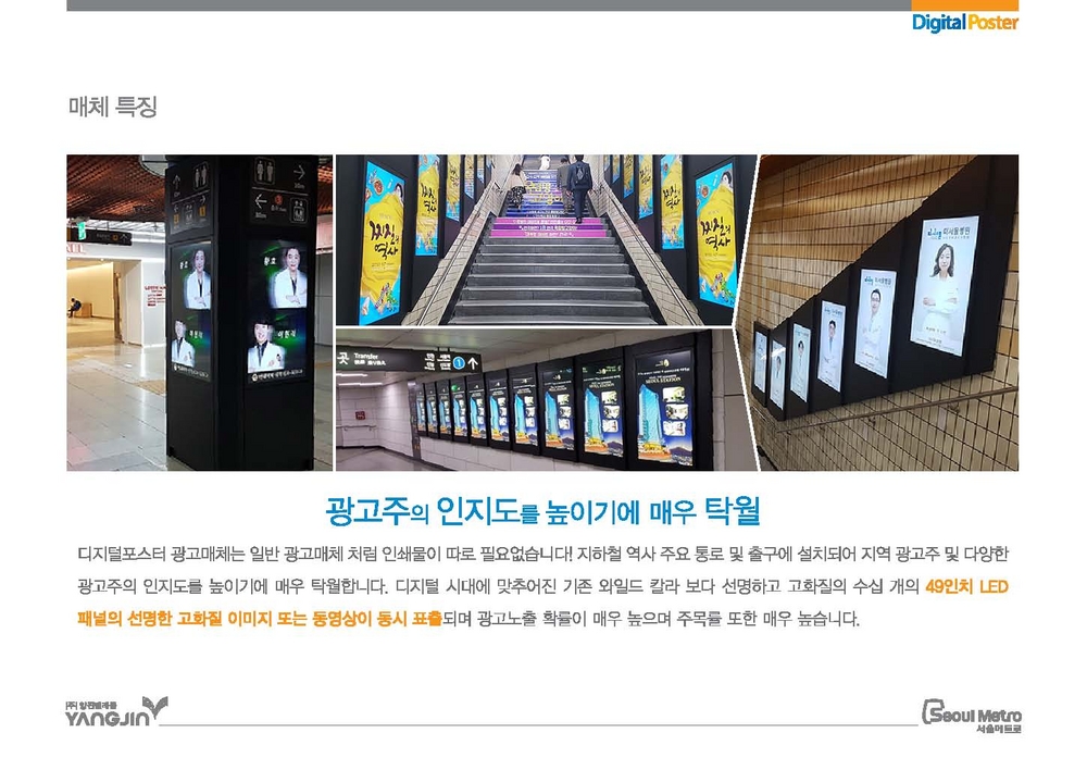 | 기업소개 | -서울 시내버스 안내시스템 - 교통안내단말기 - 광고서비스(버스,지하철음성/미디어) - 인터넷서비스 (주)양진텔레콤은 1999년 창립이래 시내버스 안내 시스템 YMBSIS(Yangjin Metro Bus Information System)을 개발하여 서울시에 납품/운영하고 있으며, 2004년 7월 서울시 대중교통체계 개편으로 버스노선 체계의 전면적인 변화와 더불어 첨단기술력을 바탕으로 ver2.0을 개발하였습니다. (주)양진텔레콤 전 임직원은 보다 나은 가치창출을 위해 전자노선도 기능이 추가된 교통안내시스템 (YMBIS ver3.0)을 개발하여 서울시에 납품/운영하고 있으며, 젊은 열정과 진취적인 기상을 더하여 정보서비스 분야에서 최상의 서비스를 제공하기 위하여 맡은 바 최선을 다하고 있습니다. |